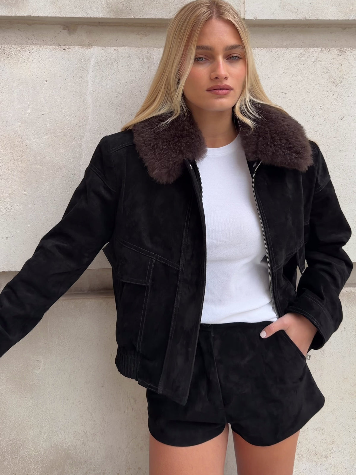 The Hailey Suede Jacket Black